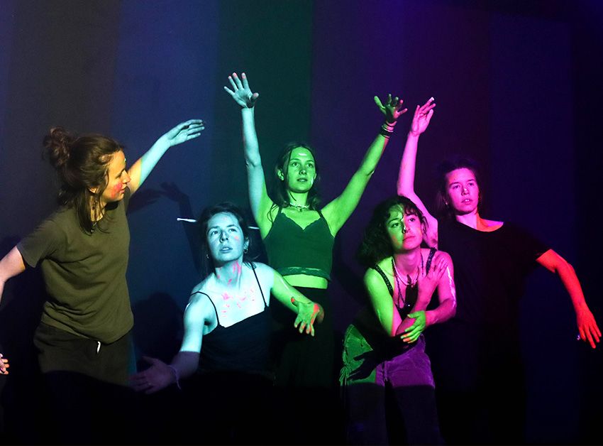 An vier Tagen wurde in den fünf Ateliers WORT/LAUT, LICHTKUNST/VIDEO, KUNST, KOSTÜM/PERFORMANCE und THEATER/TANZ kreativ und intensiv gearbeitet. Bei WORT/LAUT entstanden Textcollagen und Journaling-Experimente im Kontext einer Reflexion der eigenen Identität und Biografie. Erlebtes und Erfahrenes wurde auch bei THEATER/TANZ in schauspielerischen Szenen und Tanzimprovisationen übertragen. Im KUNST-Atelier entstanden die unterschiedlichsten Objekte und Skulpturen, sowie Malereien und Zeichnungen. Bei LICHTKUNST/VIDEO ging es experimentell zu: Mit Spiegeln, Gläsern, Overhead-Projektoren, Schaum und Schwarzlichtfarbe entstanden kleine Videos, Fotos und lichtkünstlerische Projektionen, zu denen performt wurde. KOSTÜM/PERFORMANCE legte seinen Schwerpunkt auf das Nähen und Erstellen von außergewöhnlichen Kostümen, die schließlich mit passenden Sounds und Projektionen präsentiert wurden.